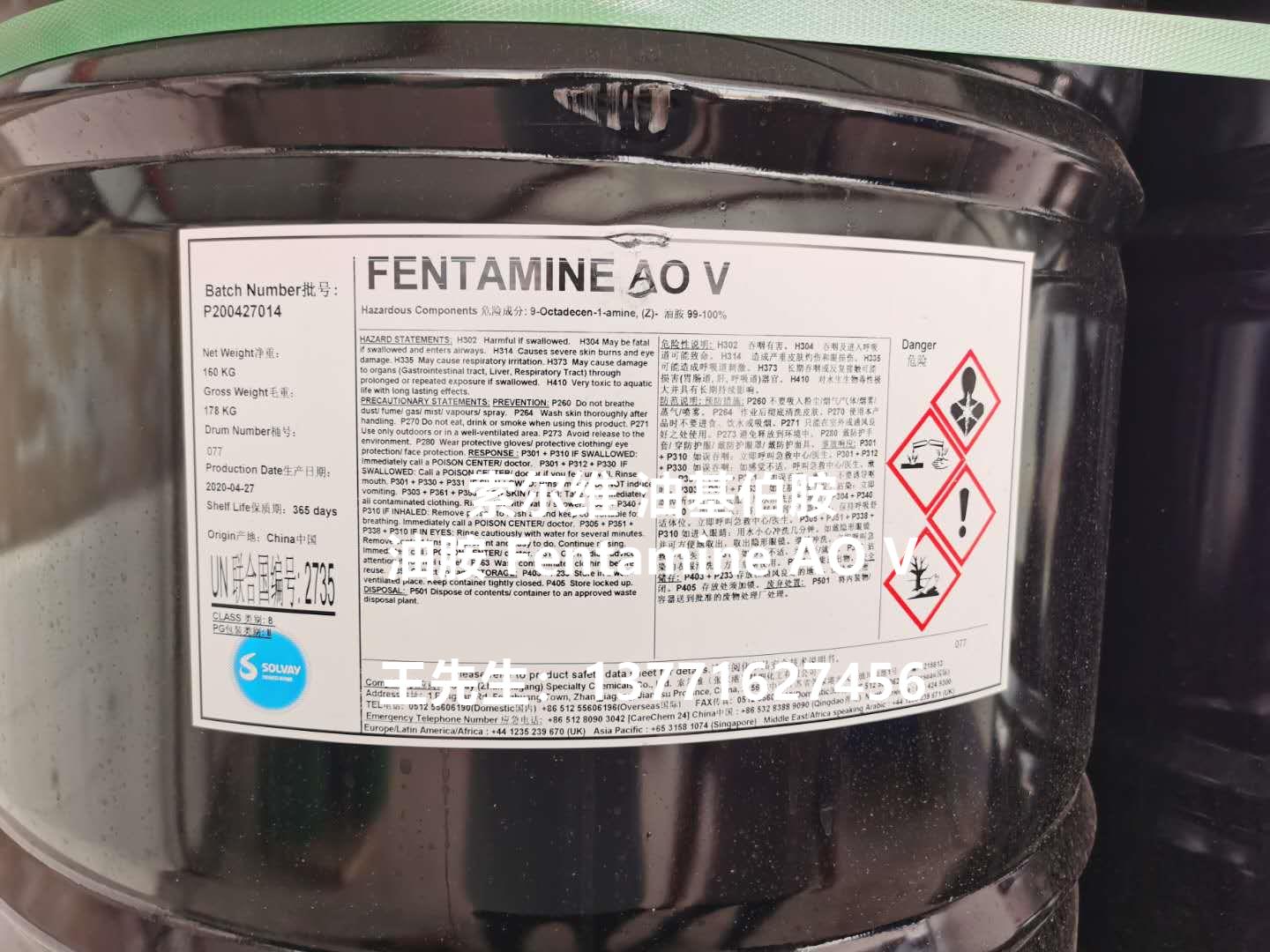 包裝 | 油基伯胺(油胺,十八烯胺,AO V)為鐵桶包裝,160公斤/桶;貯于室內陰涼通風處,防潮、嚴防曝曬,貯存期十二個月。 | |
