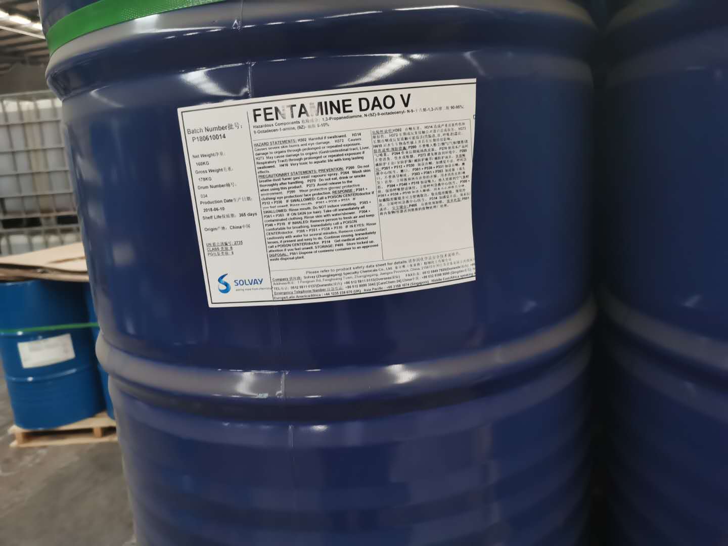 產品應用: | N-油基-1,3-丙二胺(油基丙撐二胺,DAO V)可與環氧乙烷,環氧丙烷等合成非離子表面活性劑,; N-油基-1,3-丙二胺(油基丙撐二胺,DAO V)作為瀝青乳化劑使用; N-油基-1,3-丙二胺(油基丙撐二胺,DAO V)作為礦物浮選劑,在磷礦等礦類浮選中油獨特的效果; N-油基-1,3-丙二胺(油基丙撐二胺,DAO V)亦可作為鏈條潤滑劑使用,在潤滑油添加劑行業中應用; N-油基-1,3-丙二胺(油基丙撐二胺,DAO V)在顏料行業,通常被作為顏料分散劑使用; |