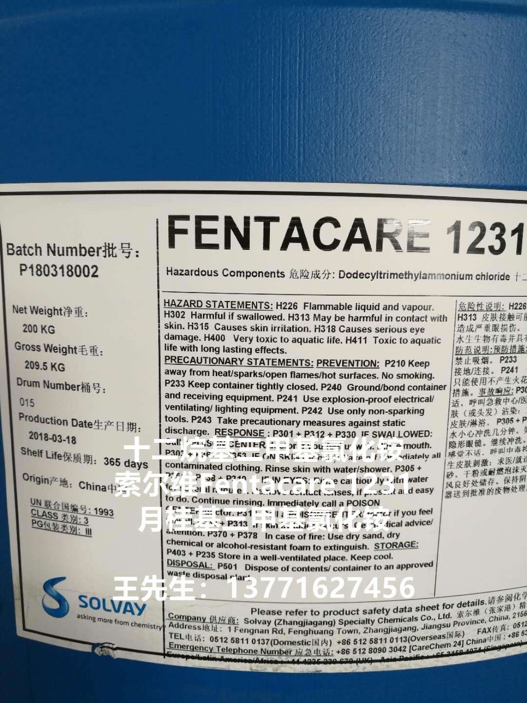 包裝 | 十二烷基三甲基氯化銨(1231,月桂基三甲基氯化銨)為50,175,200公斤/桶包裝;貯于室內(nèi)陰涼通風(fēng)處,防潮、嚴(yán)防曝曬,貯存期十二個月。 | |