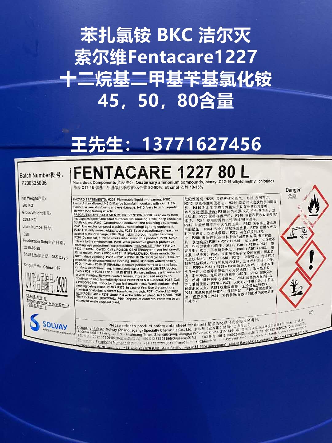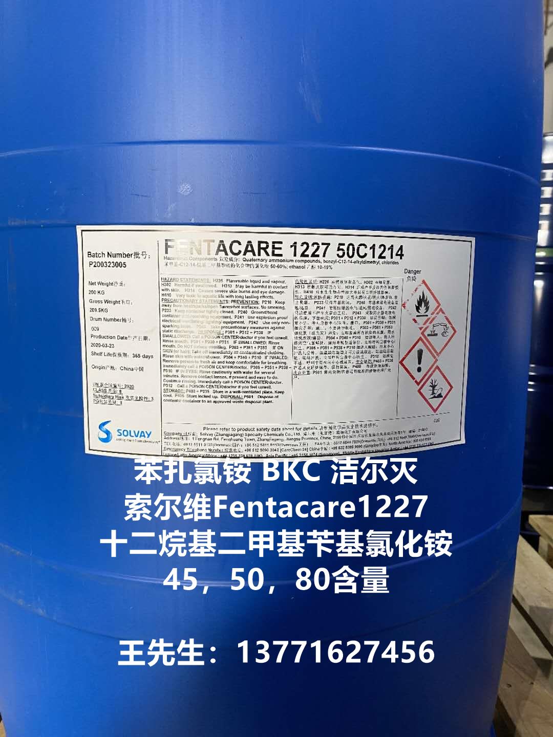 包裝 | 1227(苯扎氯銨,十二烷基二甲基芐基氯化銨,潔爾滅)為50,200,1000公斤/桶包裝;貯于室內(nèi)陰涼通風(fēng)處,防潮、嚴(yán)防曝曬,貯存期十二個月。 | |